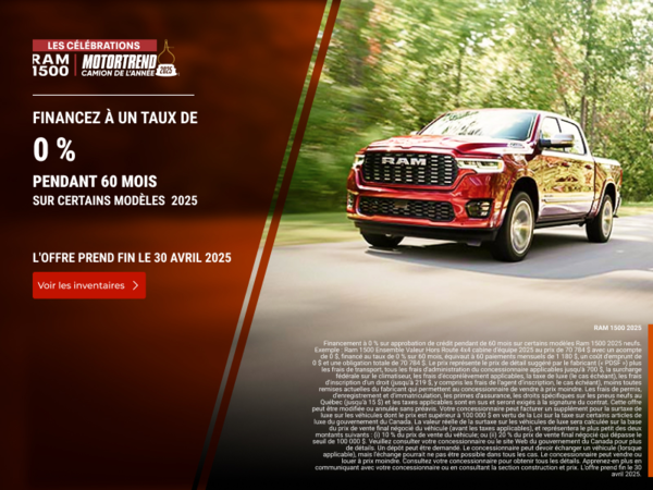 Avec Norrad Chrysler Dodge Jeep, vous pourrez économiser à l’achat d’un véhicule neuf ou d’occasion Chrysler, Jeep, Dodge, Ram ou Fiat, mais les rabais ne s’arrêtent pas là. En effet, vous aurez également droit à des rabais et offres spéciales lorsque vous venez nous voir pour l’entretien de votre véhicule ainsi que pour une pièce ou un accessoire d’origine Chrysler, Jeep, Dodge, Ram ou Fiat spécifique. Nous cherchons à nous démarquer notamment en vous permettant d’économiser lors de chaque visite. Nos départements du service et de l’entretien esthétique regorgent aussi de rabais et d’offres saisonnières. Nos promotions sont régulièrement mises à jour alors revenez souvent voir cette page!